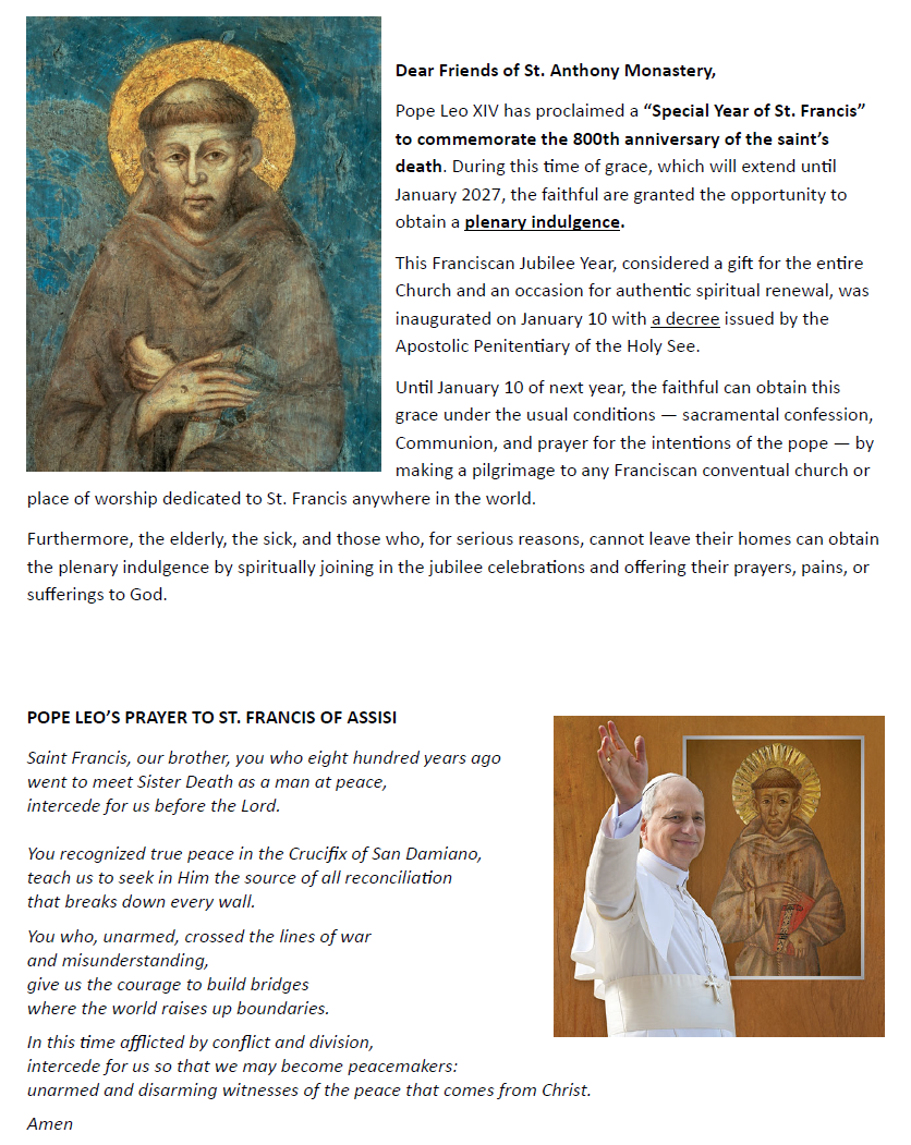 The beautiful grounds of St Anthony Monastery, the landscape of which was designed by the Frederick Law Olmstead Brothers, are open to the public and are a great place to come to relax, pray and meditate. St. Anthony is an active monastery.